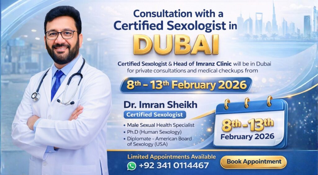 Imranz Clinic is recognized as one of Pakistan’s premier sexual health clinics due to its commitment to high-quality, personalized care in a confidential and professional environment. Our clinic is staffed with certified specialists who bring extensive experience in treating various male and female sexual health issues. We prioritize patient comfort, using advanced technology and evidence-based treatments tailored to each individual’s needs. From addressing fertility concerns to treating complex sexual health issues, Imranz Clinic has built a reputation for excellence, compassion, and results, making it the trusted choice for countless patients across the country.